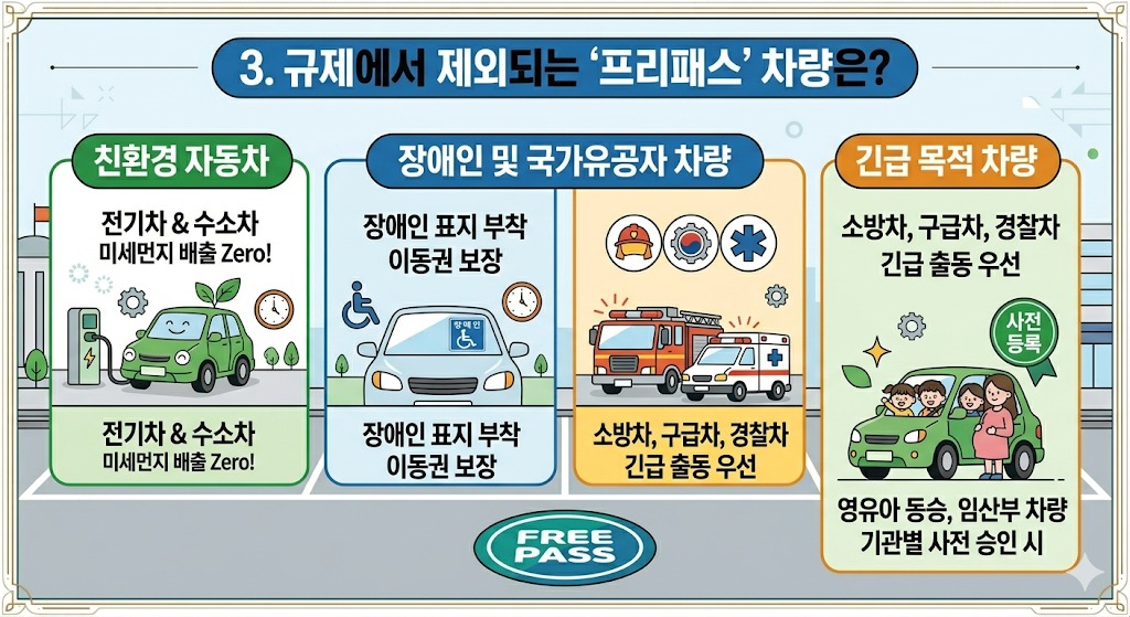 - 영유아 및 임산부 차량: 영유아(6세 미만) 동승 차량이나 임산부 스티커 부착 차량도 사전에 등록된 경우 예외로 인정됩니다.